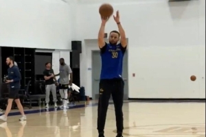 勇士球星库里在球队训练中,两分钟内连续投中36记三分!
