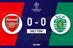 半场-阿森纳暂0-0葡萄牙体育 双方半场仅1射正 卡塔莫中柱